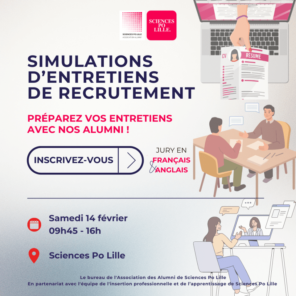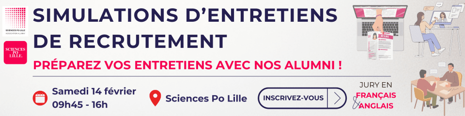 L'Association des Alumni de Sciences Po Lille et l'équipe de l'insertion professionnelle et de l'apprentissage vous proposent une session de simulations d'entretiens de recrutement le